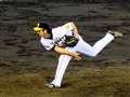 三塁側内野席からコンデジ(Canon SX40)の840mm相当超望遠(手持ち。トリミングなし。)だとこんな感じです。