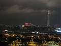 この日はビル上部に雲がかかる結構幻想的な風景で非常に珍しい夜景に出会え