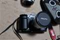 カメラにはハンドストラップとペンタの40mm用フード、