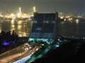 続いて稲佐山山頂展望台から長崎市内から少し外れたところにあるブルーにライトアップされた女神大橋を写しました。