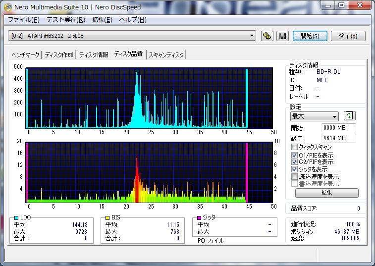 東芝BR610で焼いたパナ2倍速50GタイプBD-R