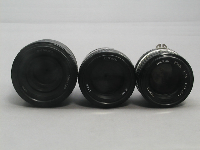 左から50mmF1.8G,50mmF1.4D,Ai50mmF1.4S