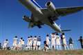 千里川の堤防だと、旅客機が真上を通りますので迫力がありますね。