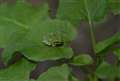 緑つながりでアマガエルなど、花は芍薬です。