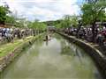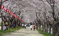 川の両側にすごい人数の観光客や見物客がいて