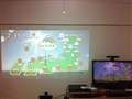 写真は天吊り後の映像ですが、カラーボックスの上に置いてた時も、ほぼ同じ位置に写してました。右の液晶TVは40インチで約40cmの台に乗っていますので、PJの映像は下方が60cm上方が180cmぐらいということです。(思いっきり朝日が入ってる部屋、電気も付けて試したのでPJの映像は薄くなってます。あと、TV周りが散らかってるのは見ないで〜)