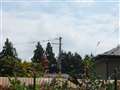望遠側で、フォーカスは中央の電柱です
