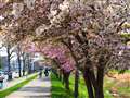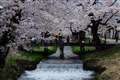 これは、すてきな写真ですね。感動しました。桜と緑と水と光と影。味わいがあります。夕方もいいですね。