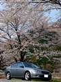 レガシィ、桜花の背景に良く溶け込んでいますね。現行DIT搭載車はパワフルですが、車体の優美さはこの型の方が上ですね。