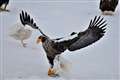 タンチョウの観察センターでは、午後になるとタンチョウとワシのエサの奪い合いを撮影できますが、600mmだと結構難しいと思います。