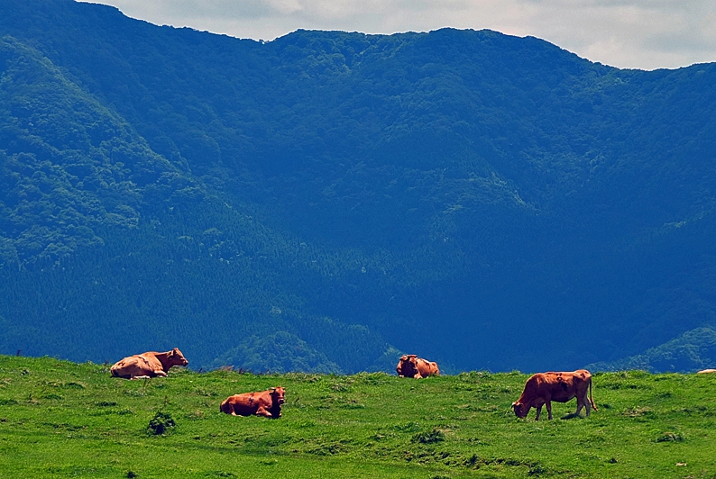 阿蘇の赤牛の放牧