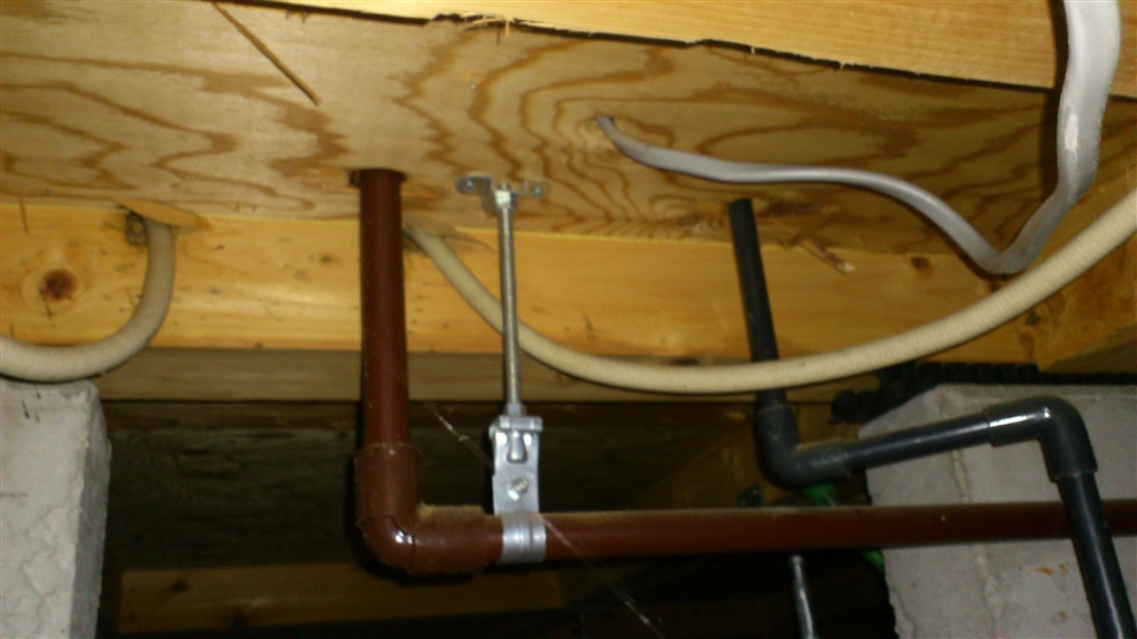 茶色の耐熱塩ビ管を途中でカットし、HT20用ソケットで継ぎ足します