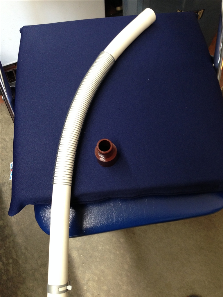 付属の排水ホースの茶色いパイプを外して呼び径20mmが入るようにします