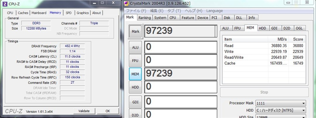 『試しにトリプルもやってみた。』CFD W3U1600HQ-4G [DDR3 PC3-12800 4GB 2枚組] φなるさんのクチコミ掲示板画像1/1