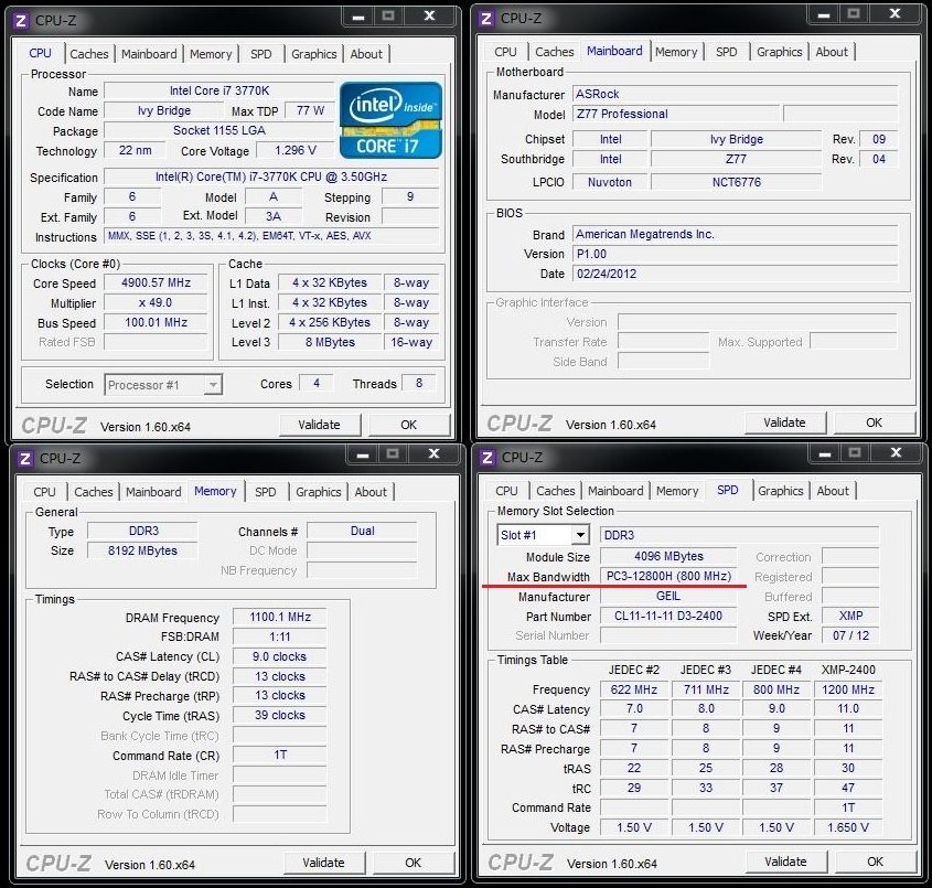 『ゲイル2200MHz.CPU-Z』CFD W3U1600HQ-4G [DDR3 PC3-12800 4GB 2枚組] こぼくん35さんのクチコミ掲示板画像2/2