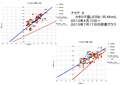 青い線は、一般道を走行して通勤した時の回帰線です。