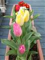 紅梅、白梅、チューリップ。