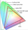 AdobeRGBは、一般的な一般的に商業印刷で使われている4色印刷の色域をほぼ内包する。