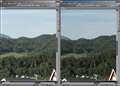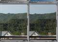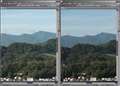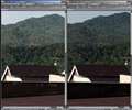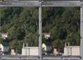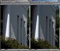 全体写真は省略し、等倍画像比較のみですが、画面右がこうです。バックグラウンドの森林の緻密さの再現に大差があります。24-70は流れています。TSE24は露出時間が暗めか逆に24-70が明るめかどちらかでです。
