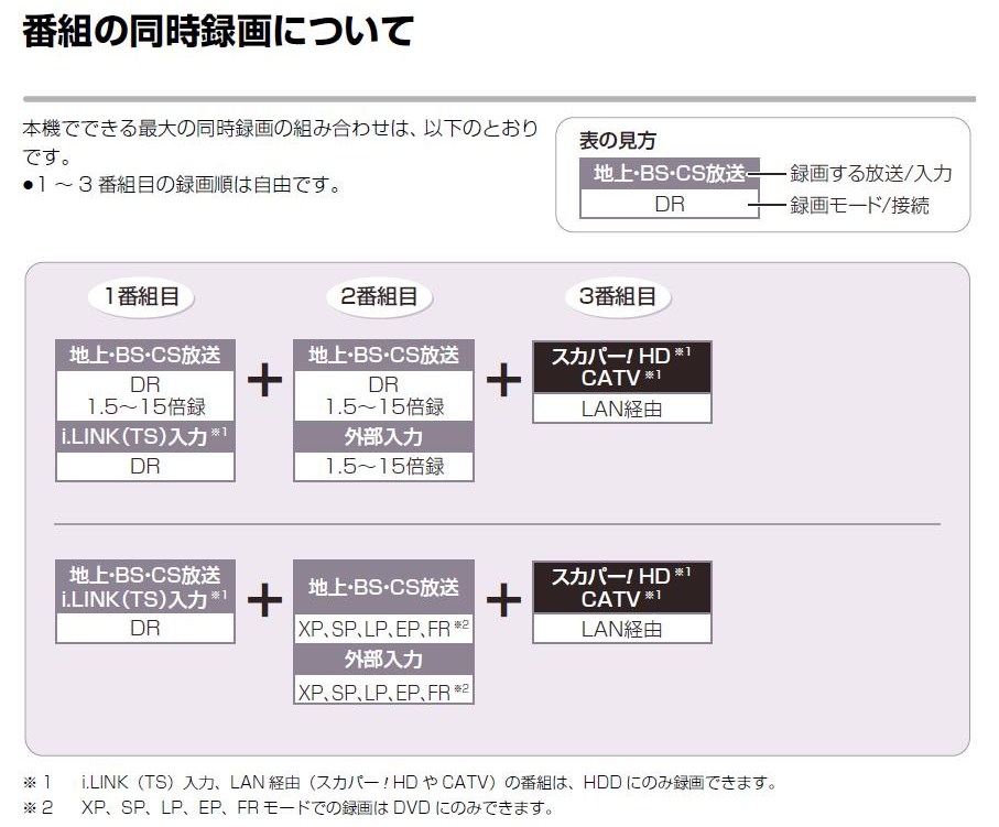 接続の仕方で同時録画が違います