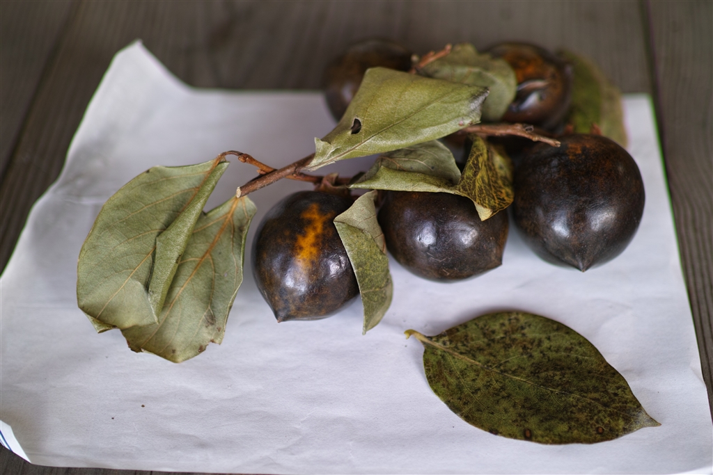出雲、横田町のそばと銀杏と黒い柿