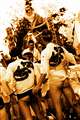 あえて男衆の背中にピントを合わせ山をぼかしました。