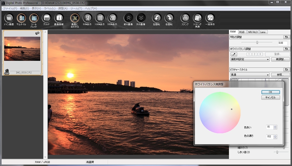 ホワイトバランス微調整画面