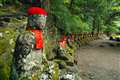 誉められ ついでに、4枚目の地蔵さん達は1枚目の修学旅行の生徒さん達が、先生を筆頭に座禅を組んでいる観たいですね ? ・・・・・・