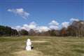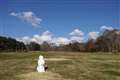八ヶ岳農場 売店前の広場に雪ダルマが一人さびしそうに鎮座していました。(前日の季節外の降雪の証拠)