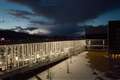 平凡な写真ですが、建物のビシッとした感じと群青色を残した空が気に入ってます。