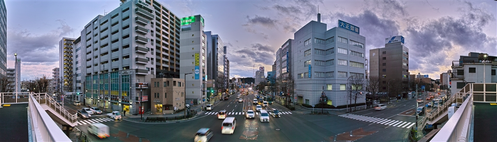 円筒図法パノラマ作例 @ : 夕暮れの歩道橋(南側)