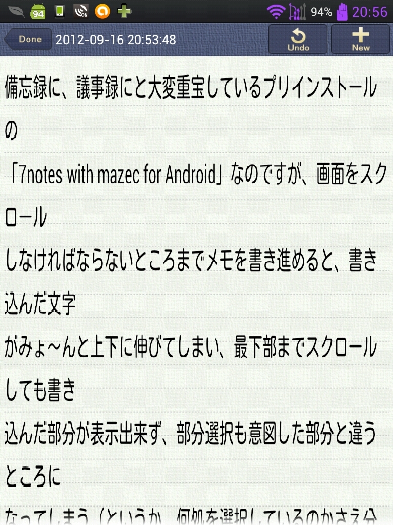 『スクロールが必要になった状態。文字が伸びてます。』LGエレクトロニクス Optimus Vu L-06D docomo 凸凹フレンズさんのクチコミ掲示板画像2/3