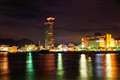 開始20分前に会場に着いたにも関わらず、花火打上台船のほぼ正面の堤防に