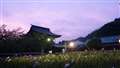 宮地岳神社の古民家の菖蒲園はライトアップのため