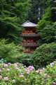 岩船寺のアジサイと塔のある風景、京都らしくていいですね。これだけ咲いていれば、時間が過ぎてしまいますよね。