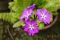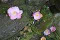 苔のついた石の上に落ちた、薄紫の花。