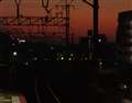 3枚目 ・・・ ホームの端から目にした、東の空の端の、日の出の予兆の鈍いオレンジ色の空
