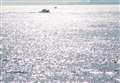 秋の陽光を浴びて波光が煌めく静かな海面を漁船が静かに・・・ |