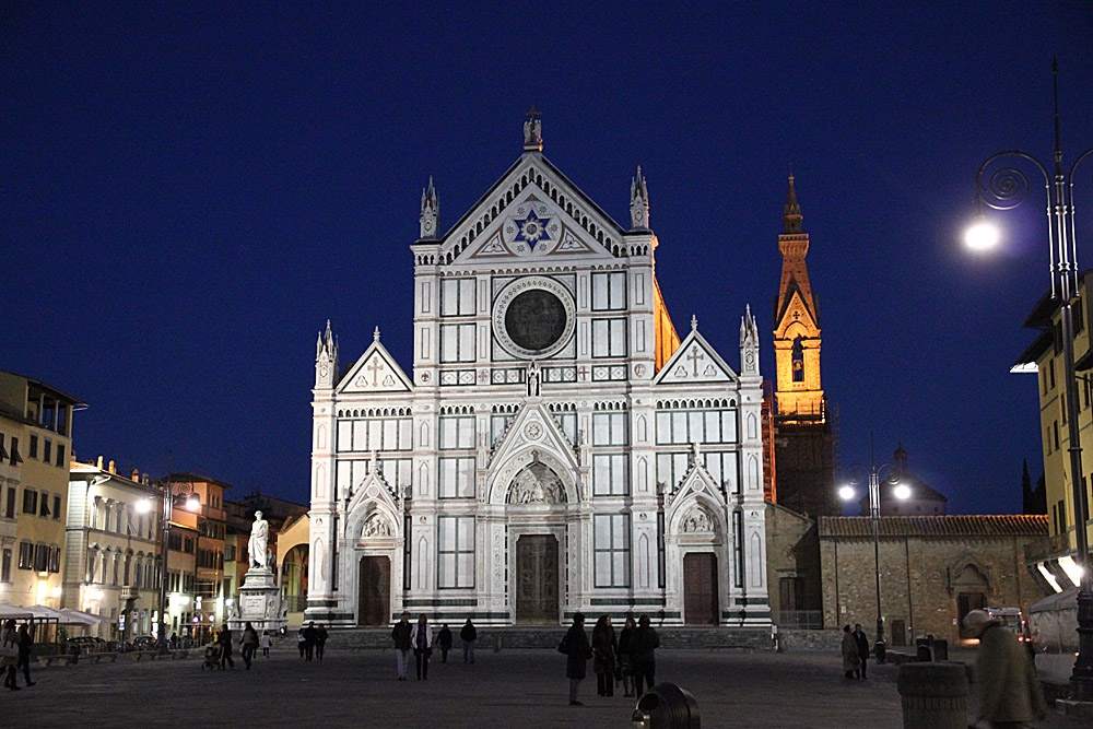 ライトに映えるガリレオが埋葬されているサンタ・クローチェ大聖堂