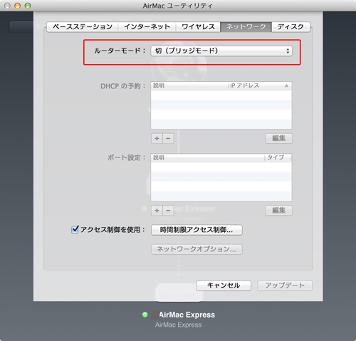 AirMac Expressブリッジモード設定