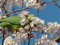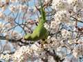 こんな、野生化したインコが花を散らしています。