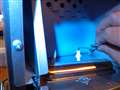 全面下部のビスをはずし防火板のビスをはずしフレームロッドに付着したシリコーンをを紙ヤスリで除去しました。(写真)