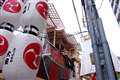 通りが狭いところに大勢人が押し寄せたので、横から写真が撮れなくて、結局前後の提灯越しにしか撮れませんでした。