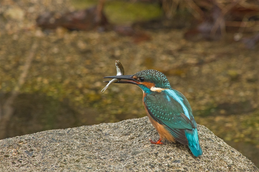 若い♂カワセミ 暗い場所