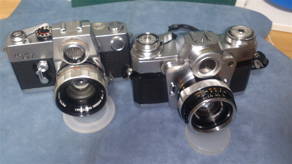 修理後のペトリフレックス7と元デザインのコンタレックス1