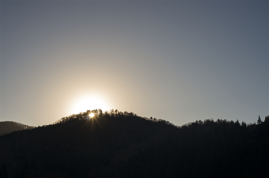 山の稜線からの朝日の出-1。