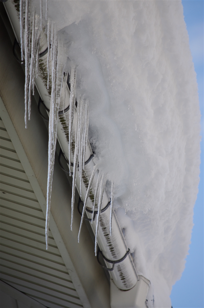 屋根の雪とつらら 少し青空