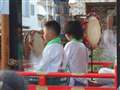 この人混みのなか三脚持って移動するのは危険ですね。抱きしめるようにもちました。