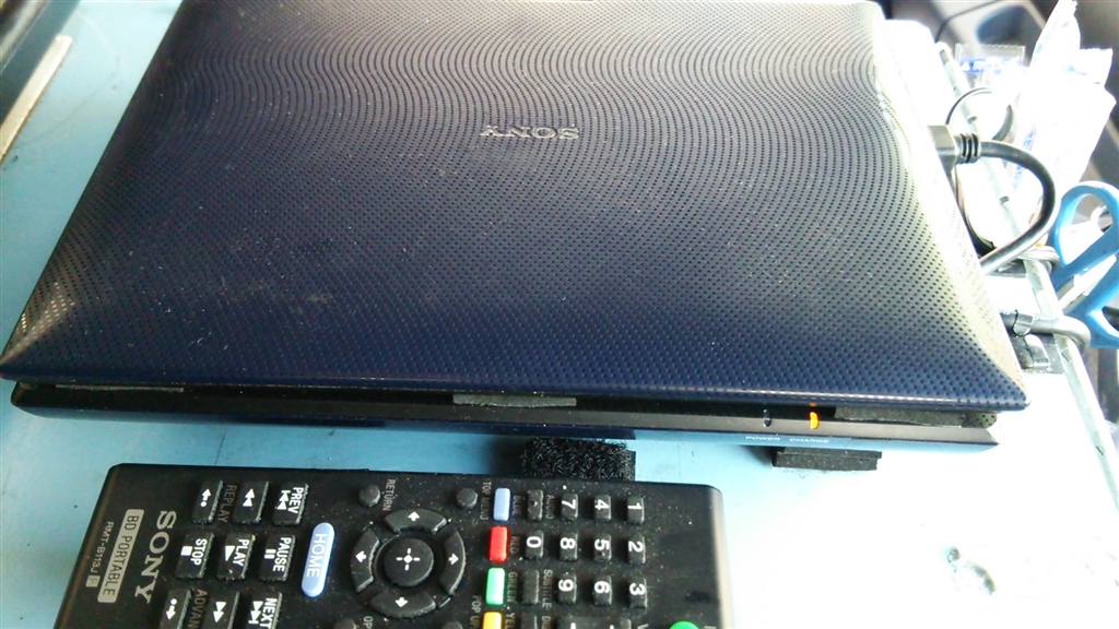 BDP-SX910の裏側にマジックテープを貼りセットした状態です。