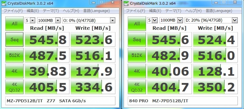 『左は2月9日 右は今日』サムスン 840 PRO Series MZ-7PD512B/IT がんこなオークさんのクチコミ掲示板画像2/2